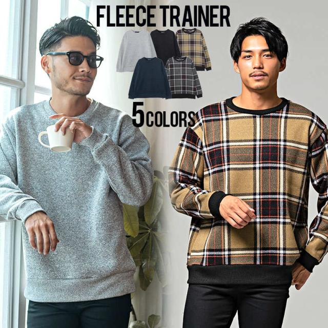 ニット フリース メンズ トレーナー スウェット ワイドシルエット クルーネック ビッグシルエット ドロップショルダー 無地 チェック柄 トップス カットソー 長袖 男女兼用 トレーナー トップス Mostshop モストショップ ファッション通販リュリュモール Ryuryumall