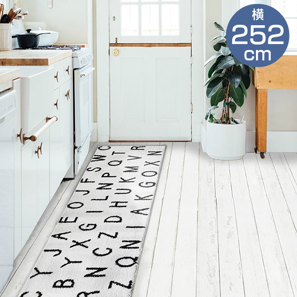 ハートマークショップ キッチンマット 45 252cm 滑り止め付き 床暖房対応 洗濯可 インテリアマット ソルトル Saltoru アルファベット ホワイト オカトー